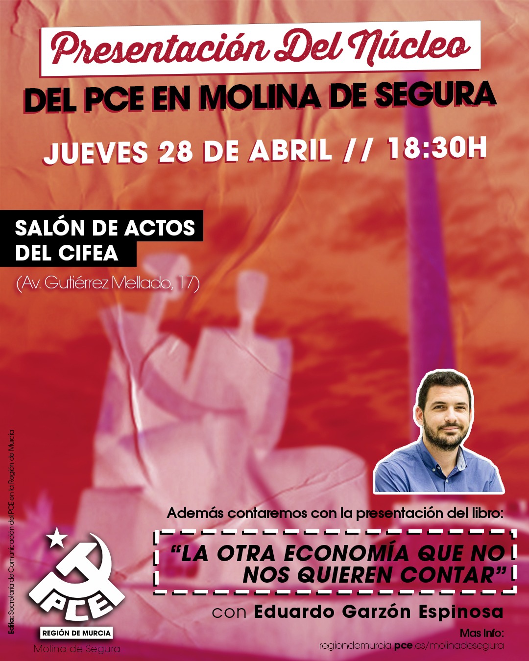 El próximo jueves 28 de abril, a las 18,30 horas tendrá lugar el acto de presentación del núcleo de nueva creación del PCE en Molina de Segura.